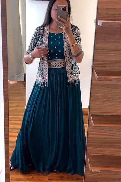 Amazing Green Colour Heavy Embroidery Work Koti Style Lehenga Choli