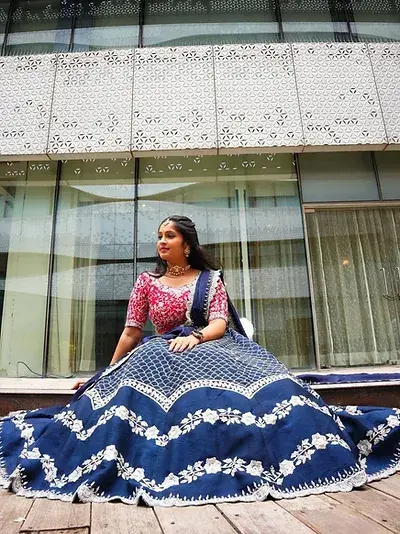 Style Sky Blue Designer Net Lehenga Choli