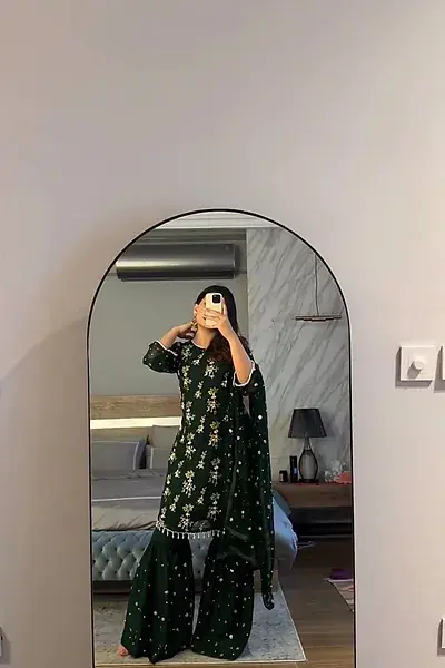New Wedding Wear Green Color Sharara Suit With Top
