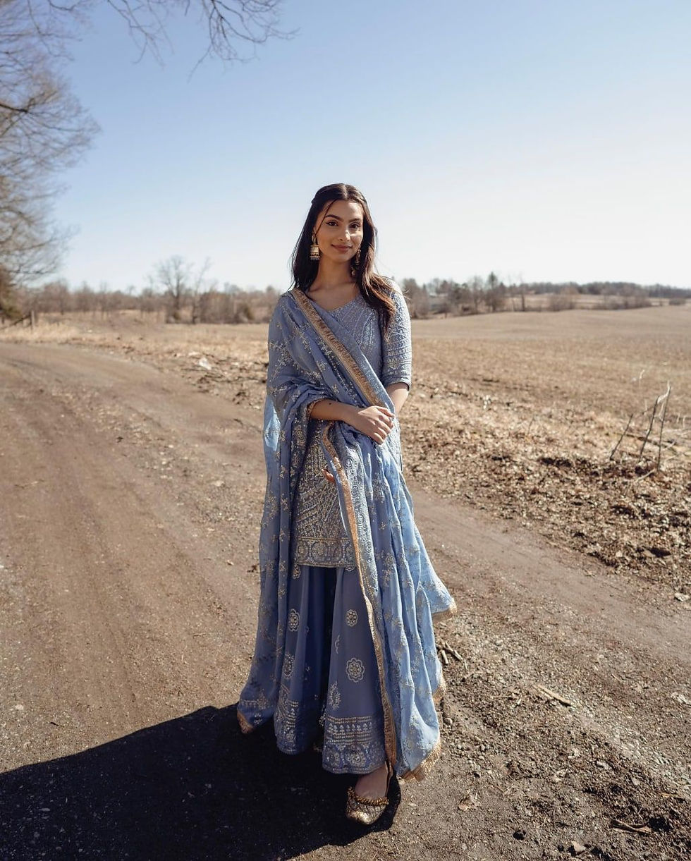 Trendy Blue Color Thread Sequence Sharara Suit