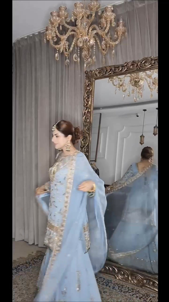 Sky Blue Colour Heavy Embroidery Sequince Work Sharara Suit